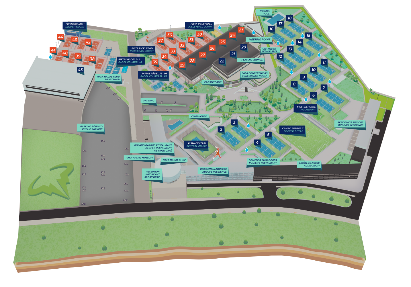 Haz clic en el mapa y descubre todo lo que la Rafa Nadal Academy by Movistar te ofrece: